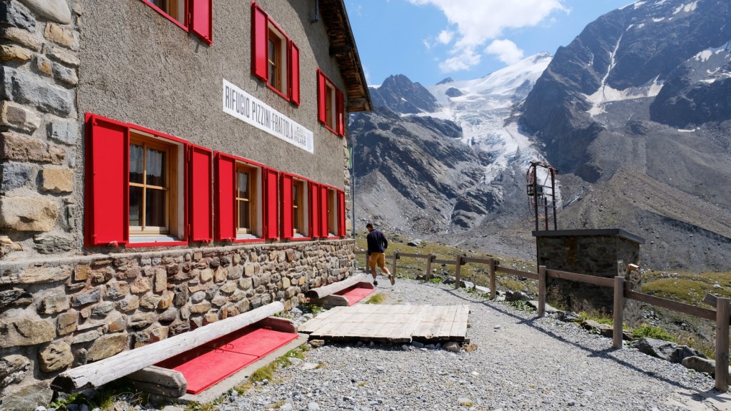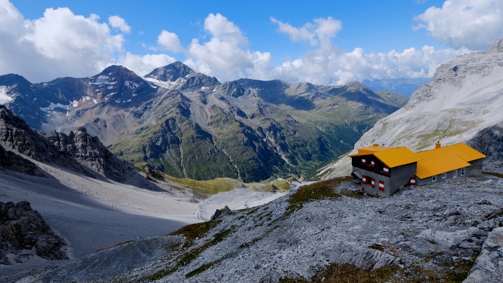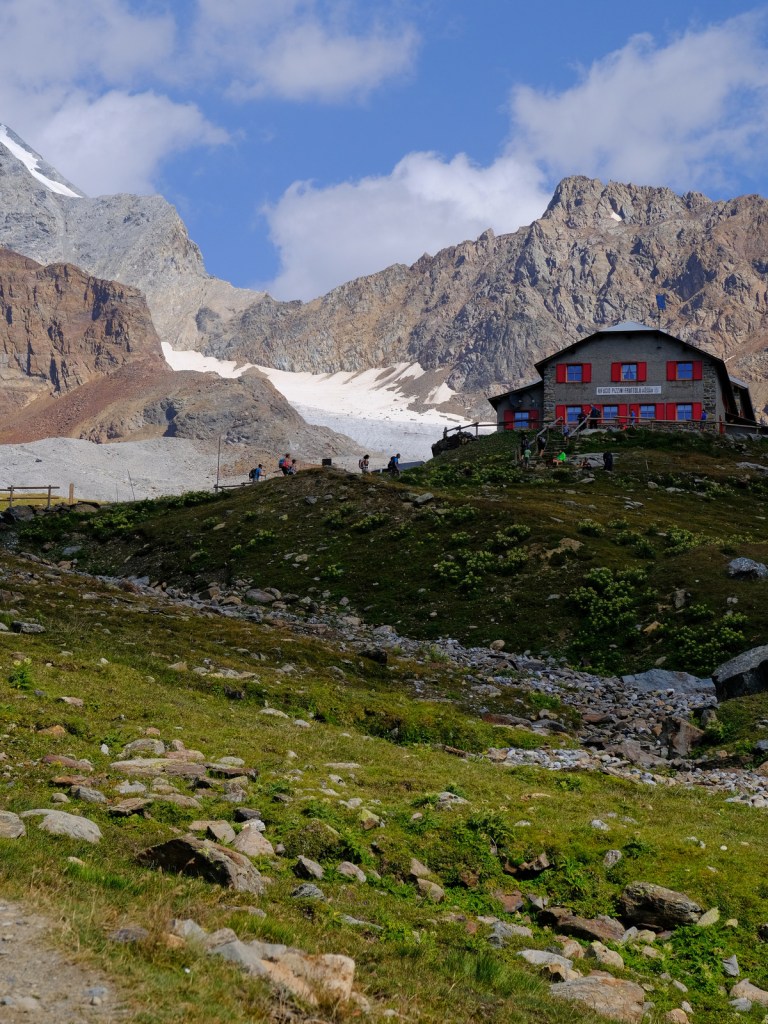 In posizione riparata dalla maestosa imponenza delle più belle cime del Gruppo Ortles – Cevedale, tra cui il Monte Zebrù (mt. 3740) e l’affilata cresta Ovest del Gran Zebrù (Suldengrat), si trova il Rifugio Quinto Alpini.